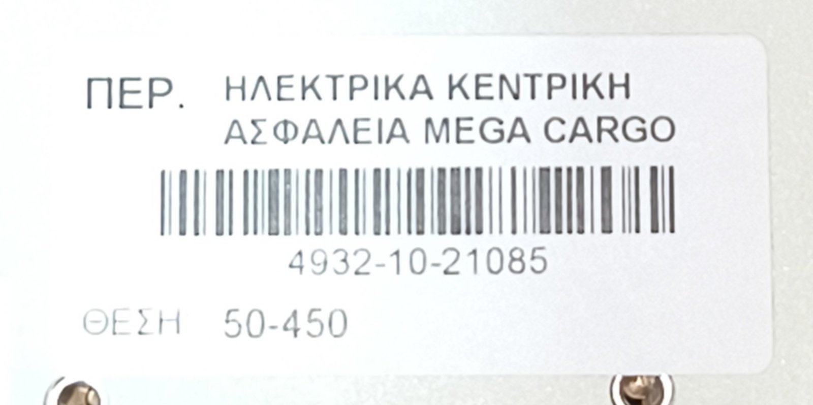 ΗΛΕΚΤΡΙΚΑ ΚΕΝΤΡΙΚΗ ΑΣΦΑΛΕΙΑ MEGA CARGO